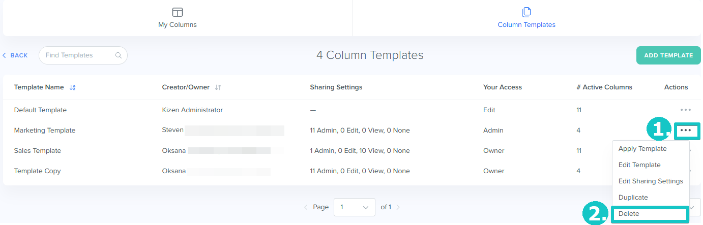 Purpose: Column Templates in Kizen allow you to customize and manage how data is displayed in the Table View for Contacts and Custom Objects. This functionality helps streamline workflows, ensure consistency, and tailor data views to meet the specific needs of your team