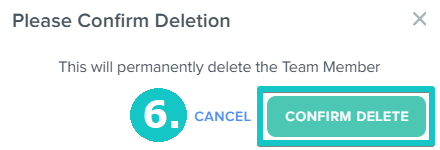 6. Confirm Delete if you would like to permanently remove this team member from your account