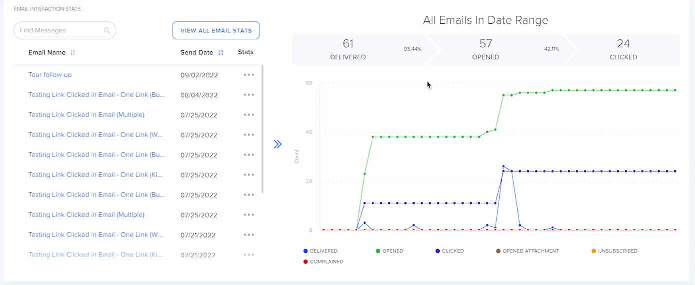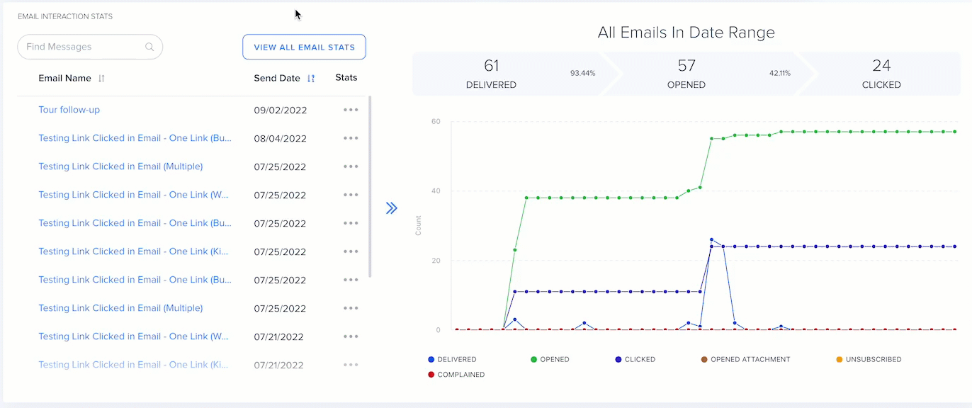 2.3 Switch to View All Email Statsto view all emails sent within the selected timeframe