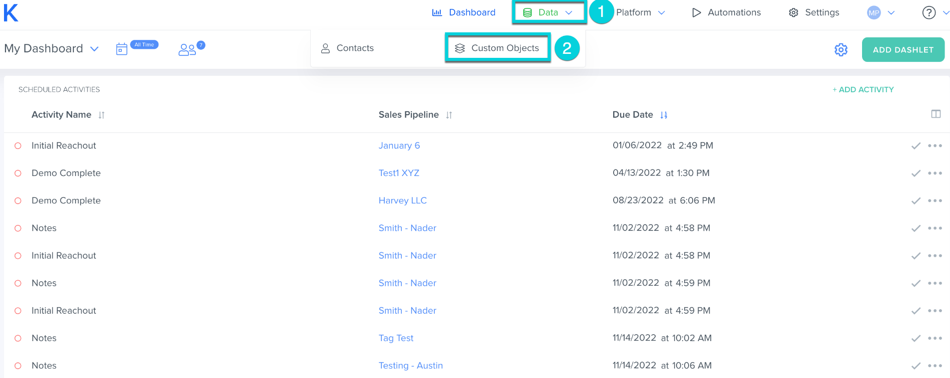 2. Click Custom Objects
