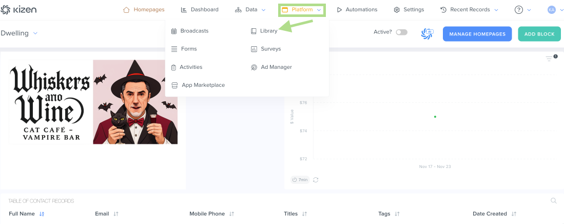 - Click on "Platform" in the top menu bar > "Library"