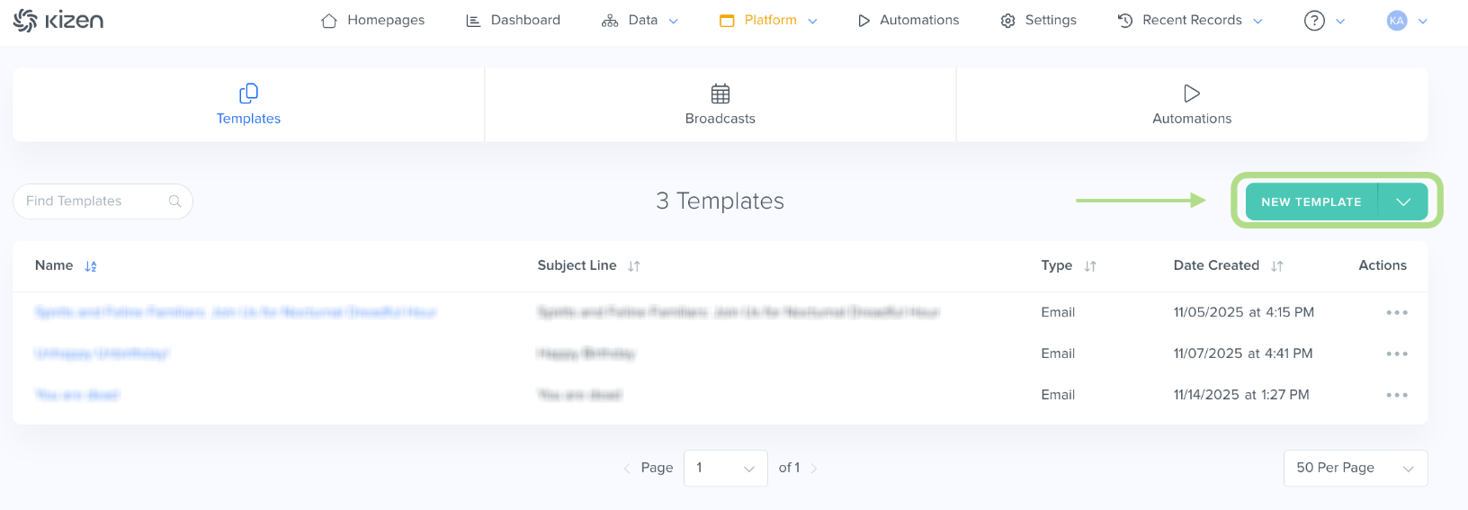 - Click on the green "New Template" button.