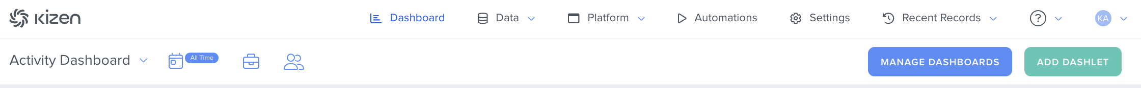 - Click on the green "Add Dashlet" button in the top right corner.