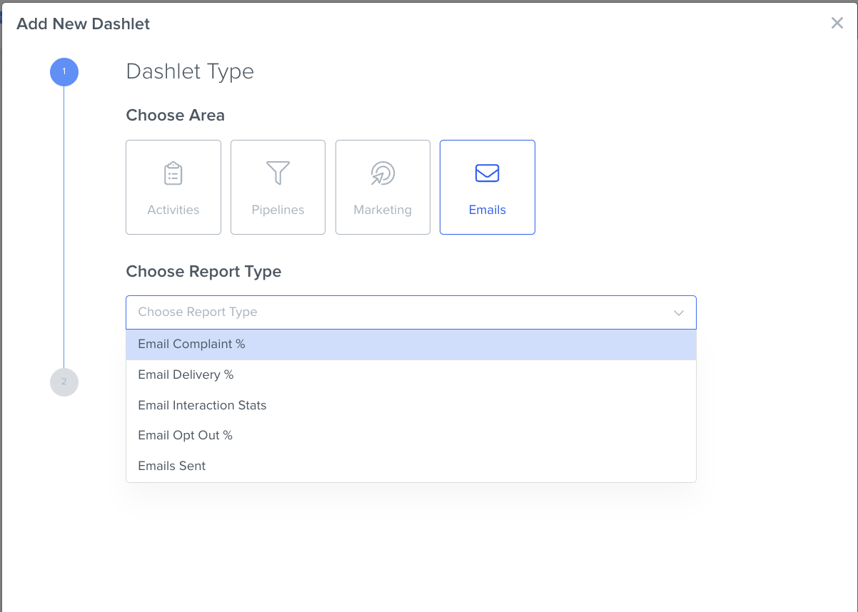 2. In the pop-up window, click on "Emails" as your Dashlet Type.