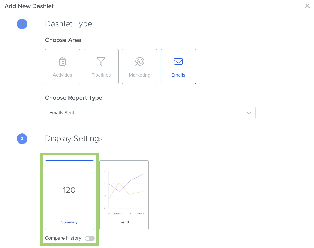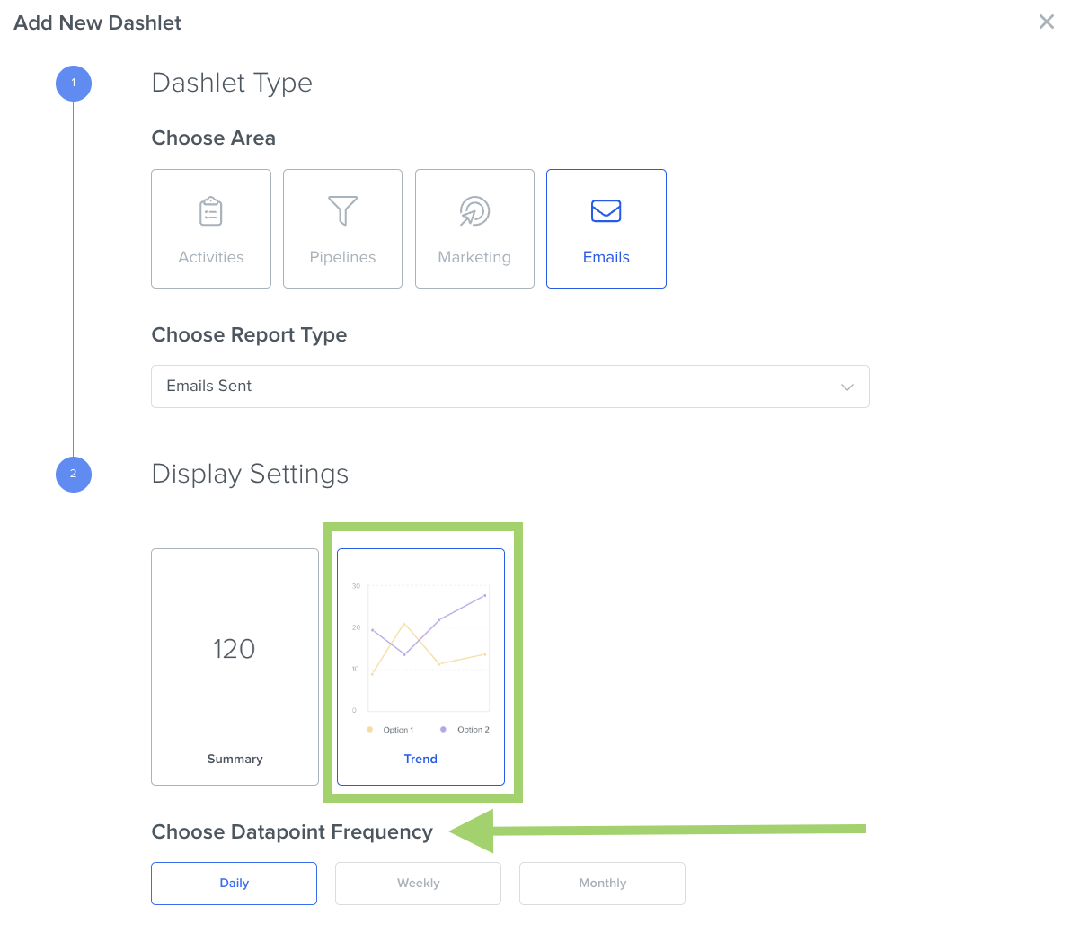 4. Choose your Display Settings as a number summary or as a chart (Trend).