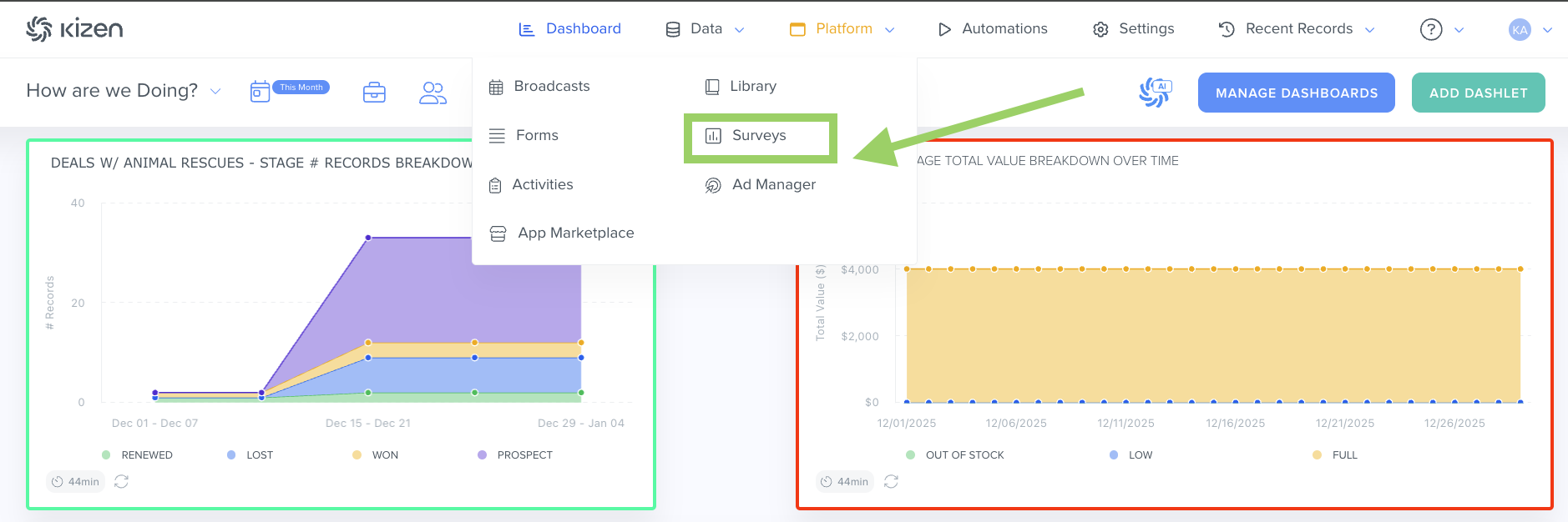 - Select "Platform" in your toolbar at the top of your screen > Select "Survey":