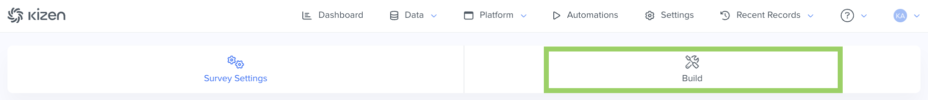 - Select the "Build" tag to start creating your Survey: