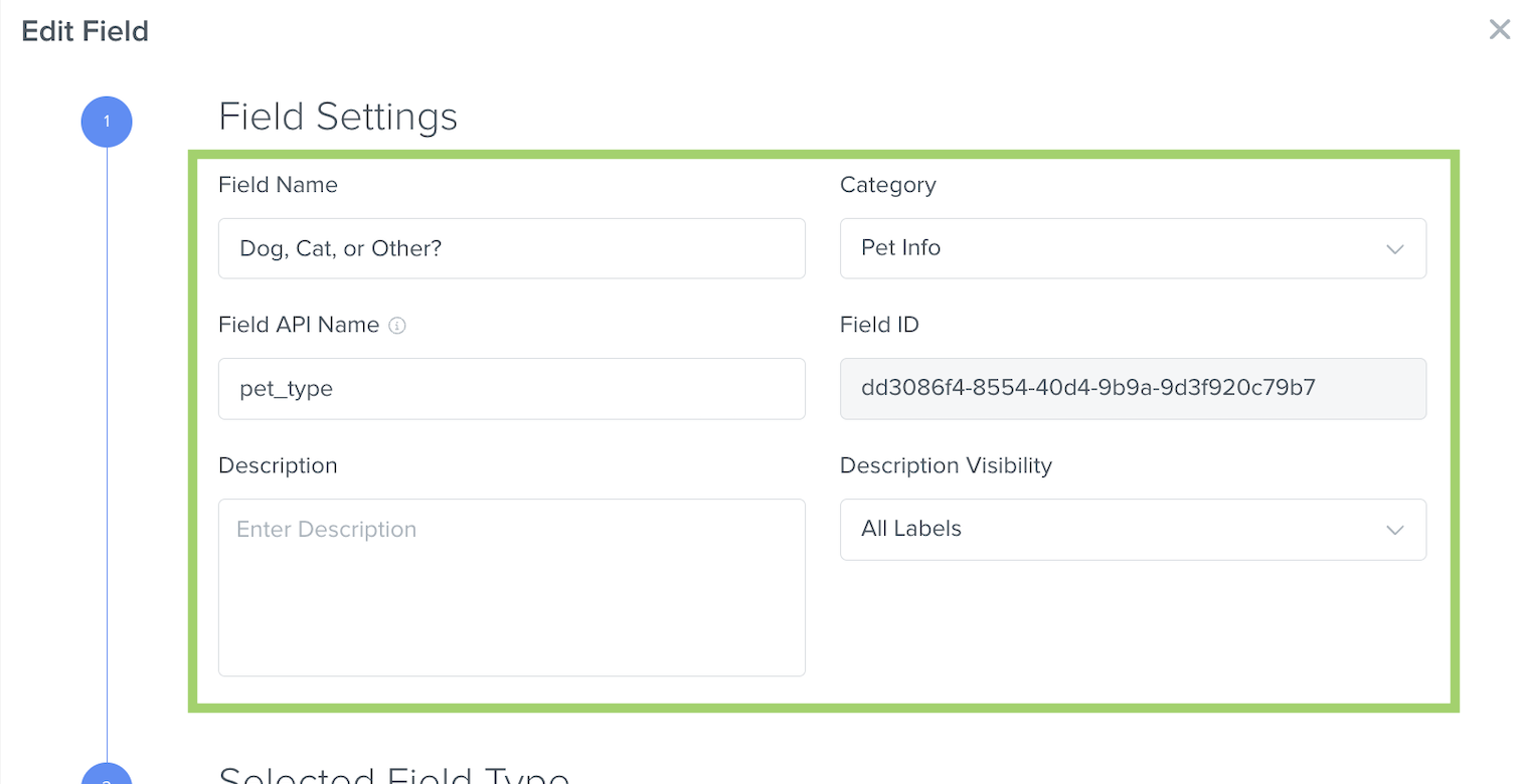 - In the pop-up window, you can change the Field Name, the Category where the field currently lives, and the Description (which is useful to describe the purpose and functionality of the field).