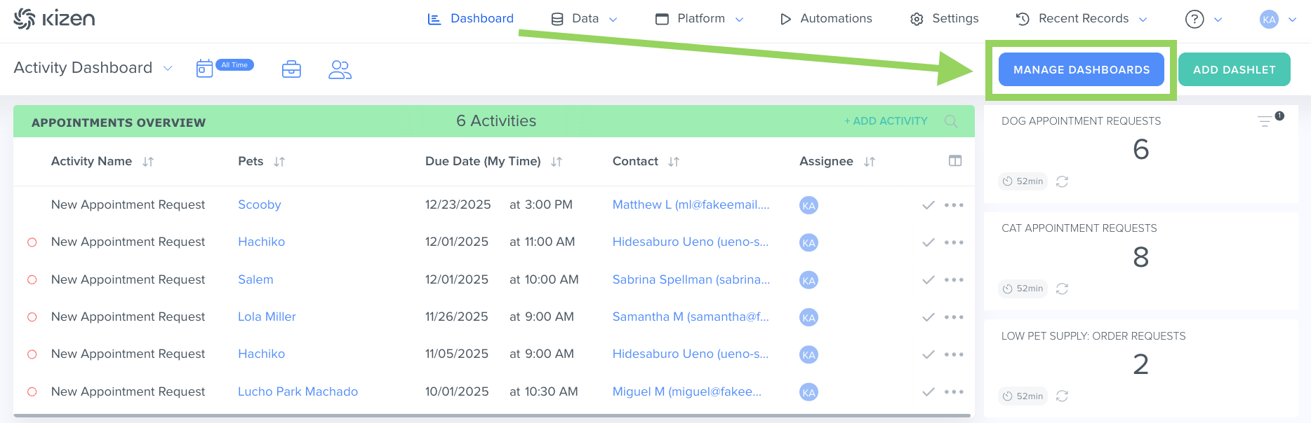 In Kizen, you can build one Dashboard to centralize your team's Activities or reports and metrics, or you can build as many Dashboards as you want, each with their own purpose for your different business operations.