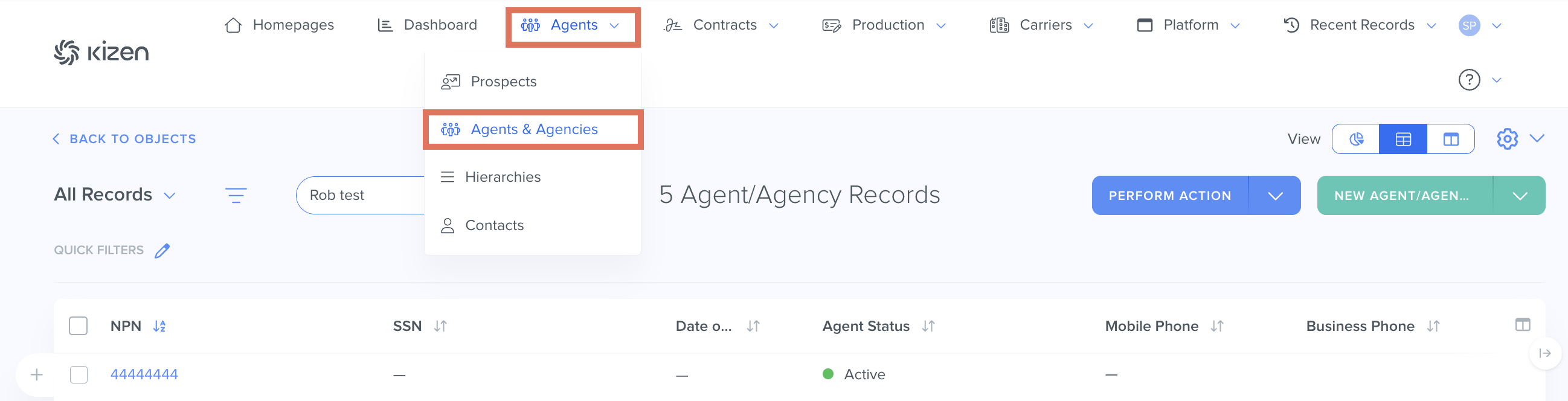 - In the *Agents & Agencies object, search for the specific Agent or Agency record.