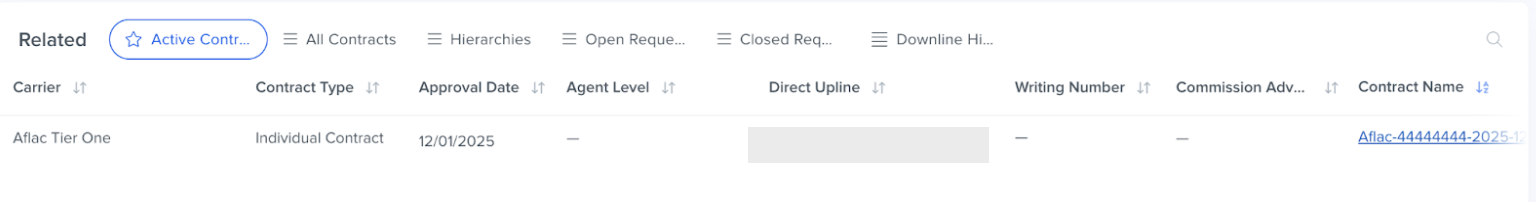 - Check the "Active Contracts" section in the agent record to confirm that the contract was created successfully.